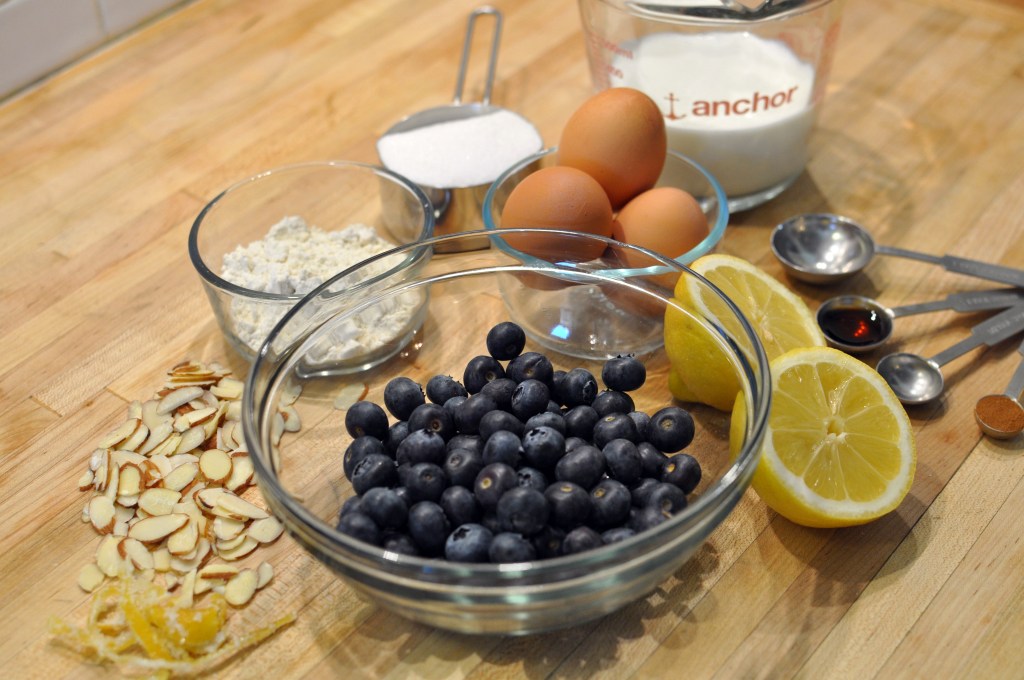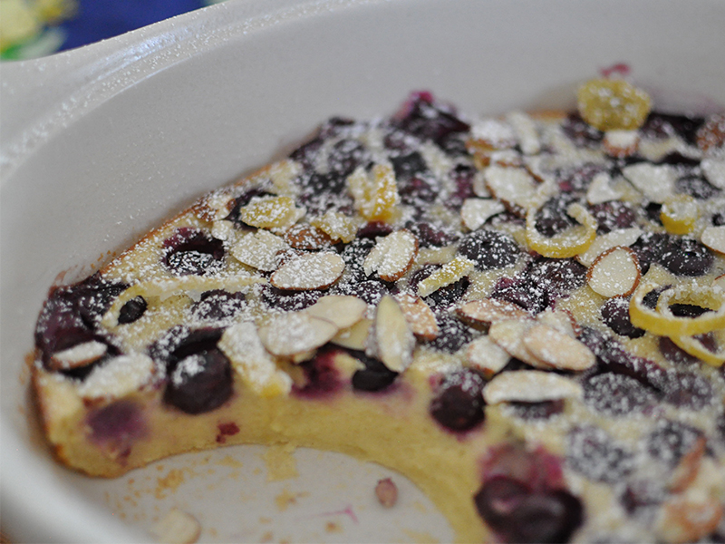 Swirls of blue and yellow consume van Gogh’s Starry Night. Inspired by these shapes and colors, I decided to create a recipe that included lemon and blueberry. I wanted to created a recipe that honored the time that van Gogh spent in France, so I began researching French cuisine, namely desserts, as I wanted to use the aforementioned ingredients. Clafoutis is defined by wikipedia as “a baked French dessert of fruit, traditionally black cherries arranged in a buttered dish and covered with a thick flan-like batter. The clafoutis is dusted with powdered sugar and served lukewarm, sometimes with cream.” I thought this sounded delicious and thought it would work well with blueberries instead of cherries.