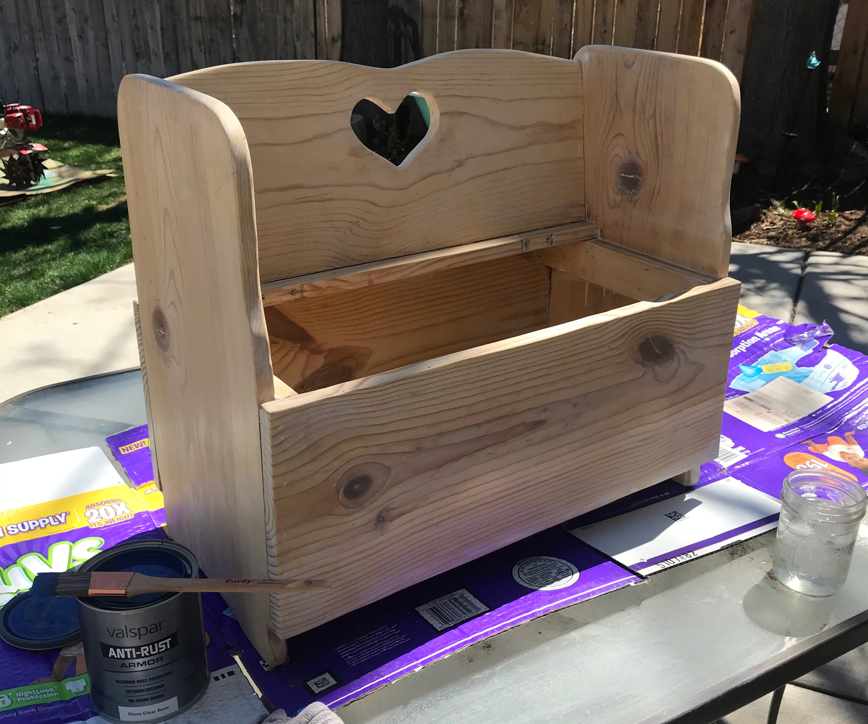 About a year ago, a dear friend of mine gifted me the cutest little bench/toy box and said that it may need some fixing up, as it looked like many-a-kid had had their share of fun with it. I have been trying to think of what to do with it at least weekly for as long as I have had it. After a few months of it sitting in my front room, my handy husband sanded it down beautifully and then it sat some more. I just needed it to be perfect. Then, I thought as I am putting together this idea for a blog, “I’ll “van Gogh” it! (That is my new term for painting Starry Night on something.) The whimsical emotion that Starry Night evokes in me seemed like a fitting theme for a child’s toy box.