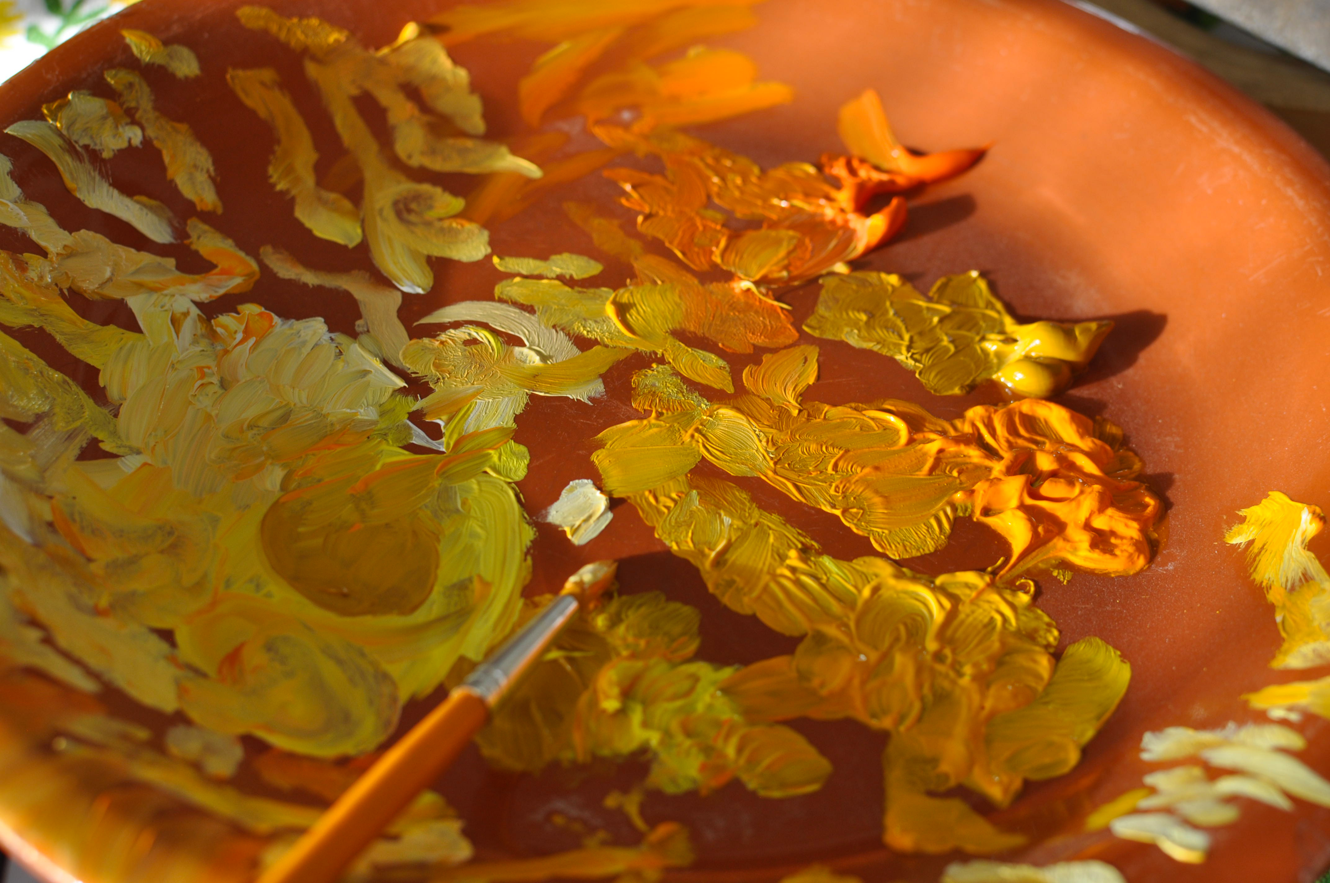 I had never touched oil paints before this project, let alone try to mimic the work of a master painter, so I was a little nervous to begin. But as soon as I put my marker to the box, I just kept going, and was ready to start painting in no time. I’d done a bit of research on van Gogh previous to starting this project, so I thought of him often while I was swirling away. If you are interested in learning about van Gogh, I would recommend reading the letters that he sent to his brother (and others) and watching this biography film.